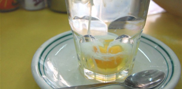 新一代食客未必嚐過滾水蛋,事實上,這道冰室獨有的特色飲品,製法非常簡單,只需要打完整雞蛋到滾水中即可。水吧師傅表示,雖然大部分茶餐廳都不會把滾水蛋加於餐牌上,但不時都會有四、五十歲的熟客柯打滾水蛋,水吧不妨破例為客人簡單特製一杯,好讓客人懷念一下昔日情。